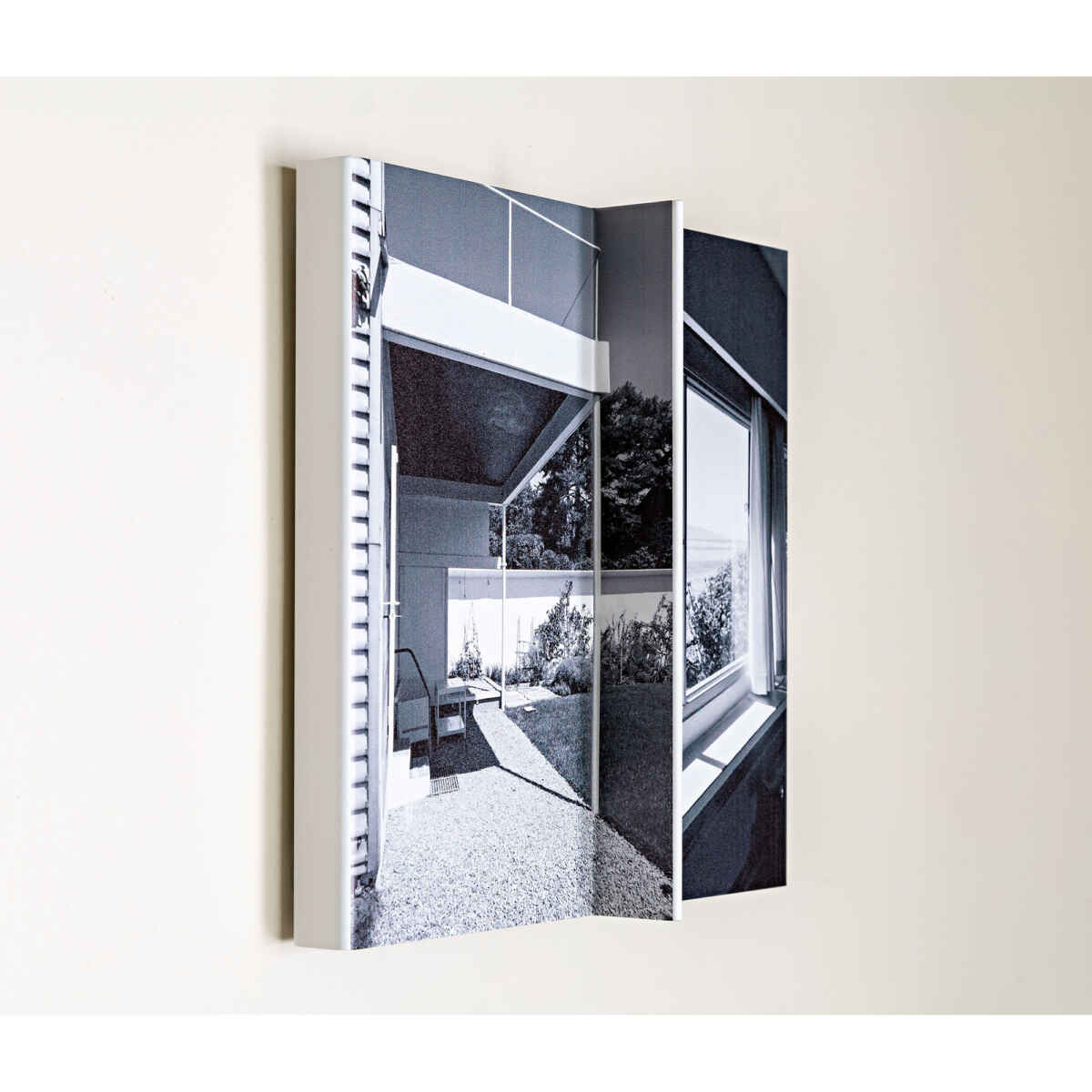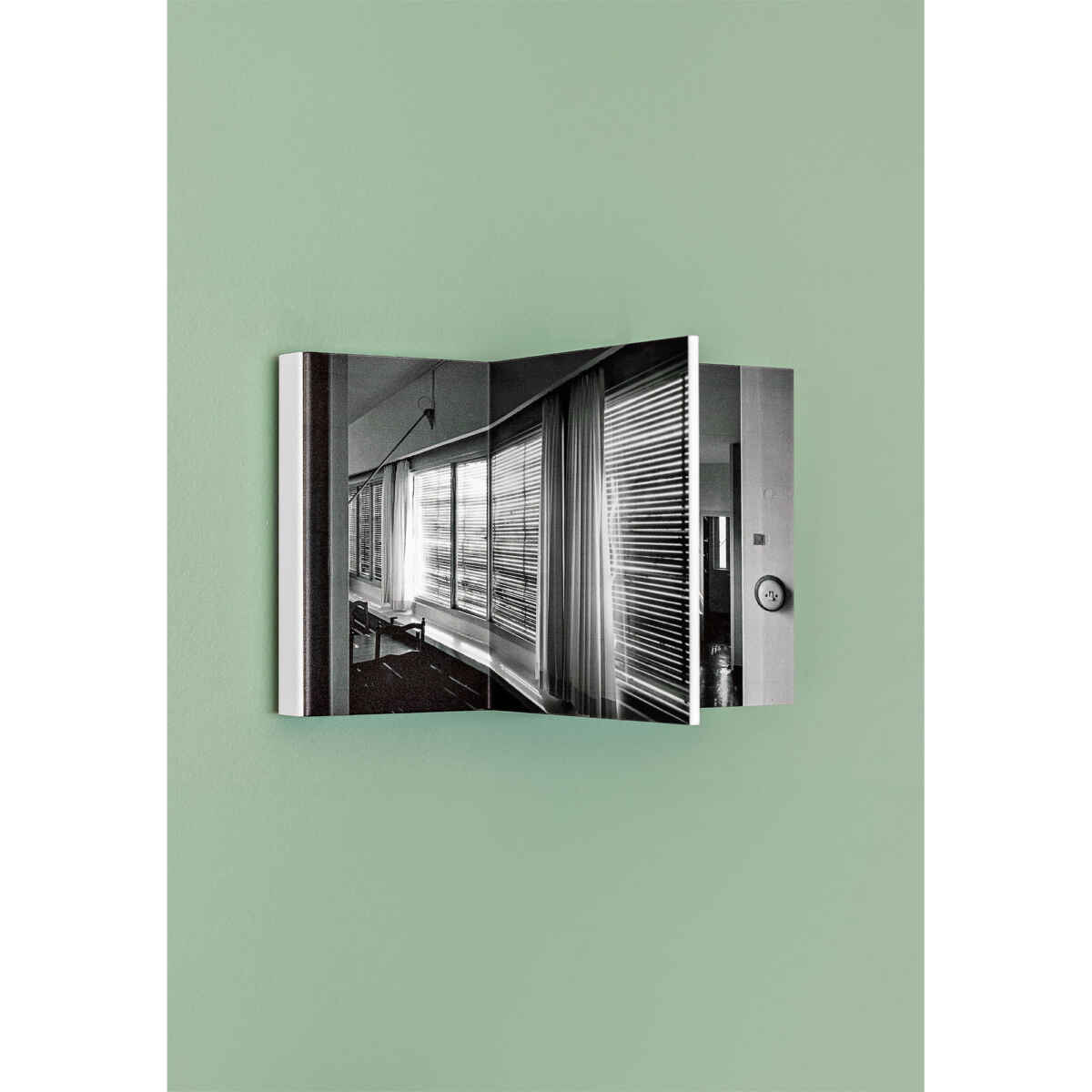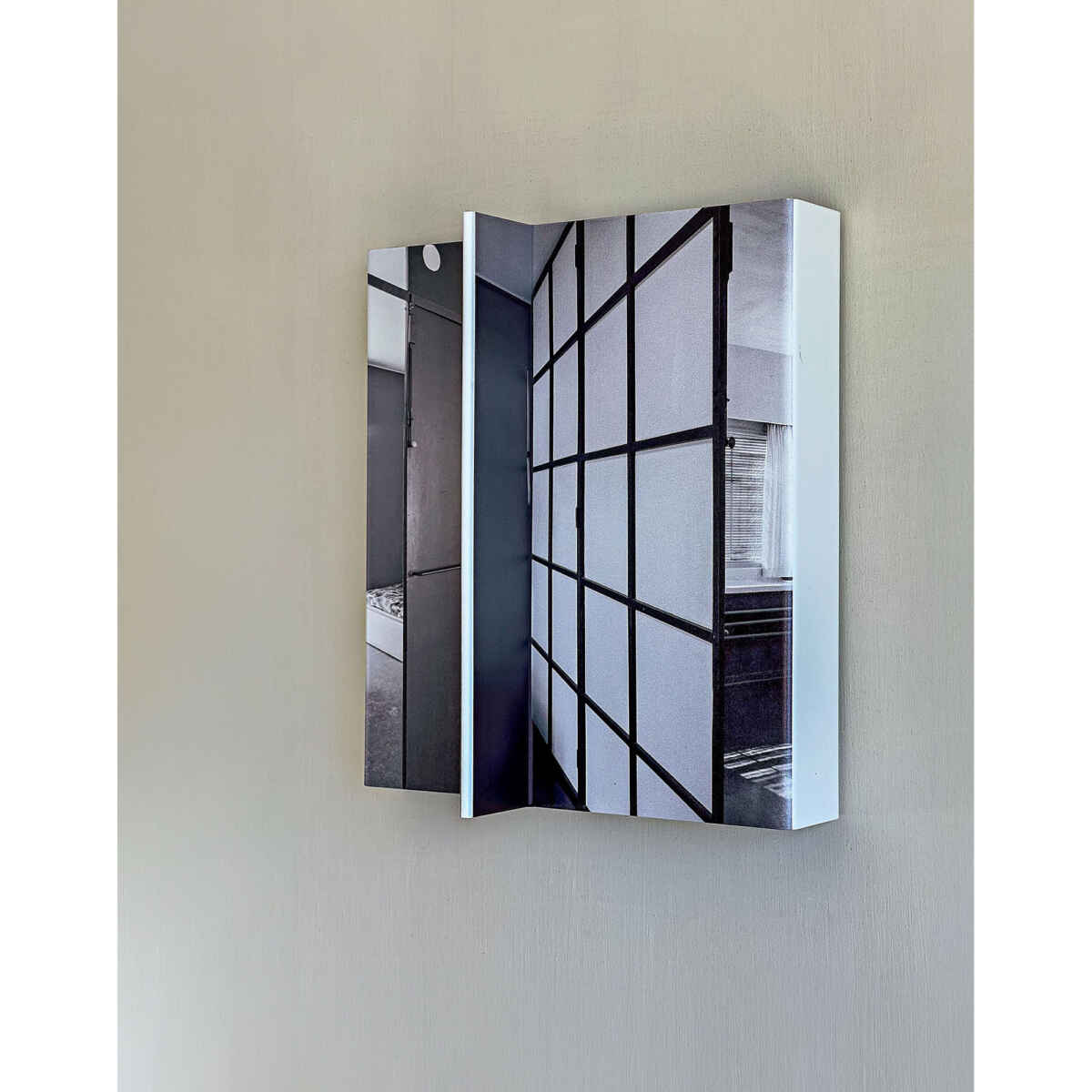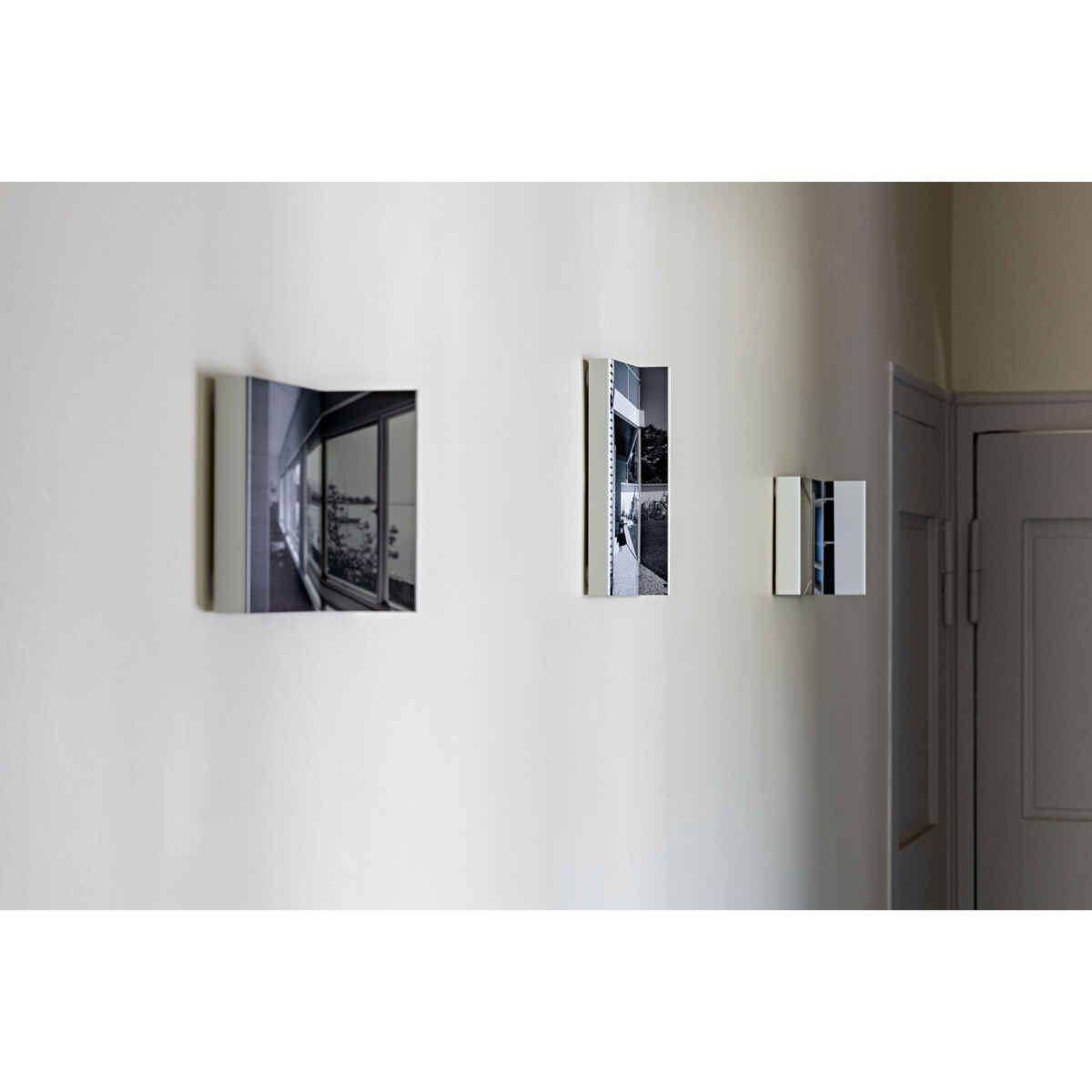 La raison pour laquelle j’ai choisi le noir-blanc, c’est parce qu’il permet de raconter une histoire ou faire état d’une abstraction, tandis que la couleur permet plutôt de montrer une atmosphère. Je travaille souvent en noir-blanc: ça révèle bien la lumière et c’est plus sculptural que la couleur. D’ailleurs, je pense que ce serait contre-producif de travailler en couleur, ici, vu la place prépondérante de la couleur à la Villa. Avec le noir-blanc, je fais une sorte de transformation de l’image – c’est ça que je trouve important. J’ai souvent fait de grandes installations (plusieurs fois à Vevey, d’ailleurs) et je suis connue pour faire des giganto sur des façades d’immeubles et de monuments – c’est pour ça que je trouve intéressant de travailler à une autre échelle. C’est aussi l’occasion de parler autrement de la grandeur: pas besoin de gigantisme pour exprimer le grandiose. Les formats des objets-types sont adaptés à la Villa «Le Lac» qui ne fait que 64 m² ; et ici, on est bel et bien dans quelque chose de grandiose. Il y a un concentré de génie dans cette maison, c’est extraordinaire. Pour moi, c’est un chef-d’œuvre!»