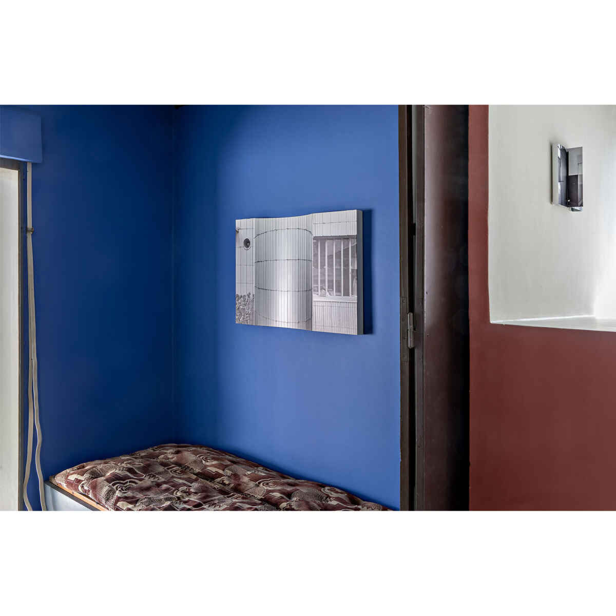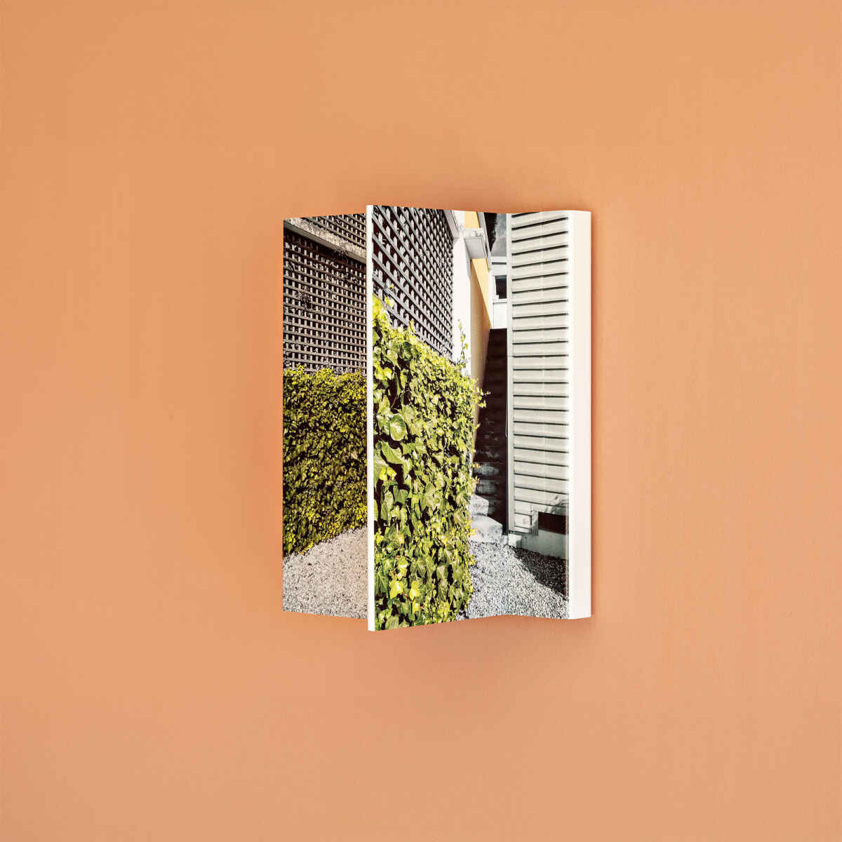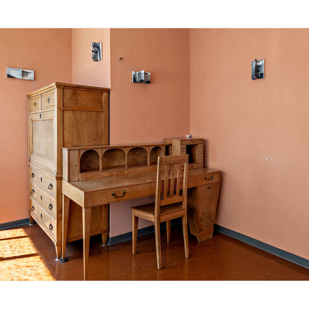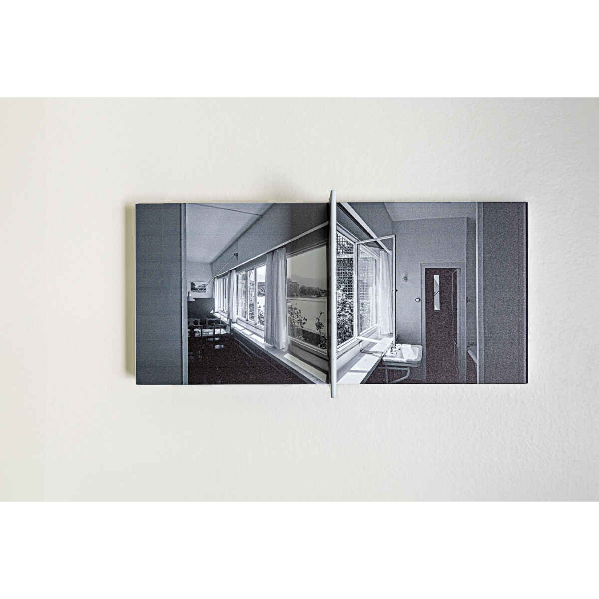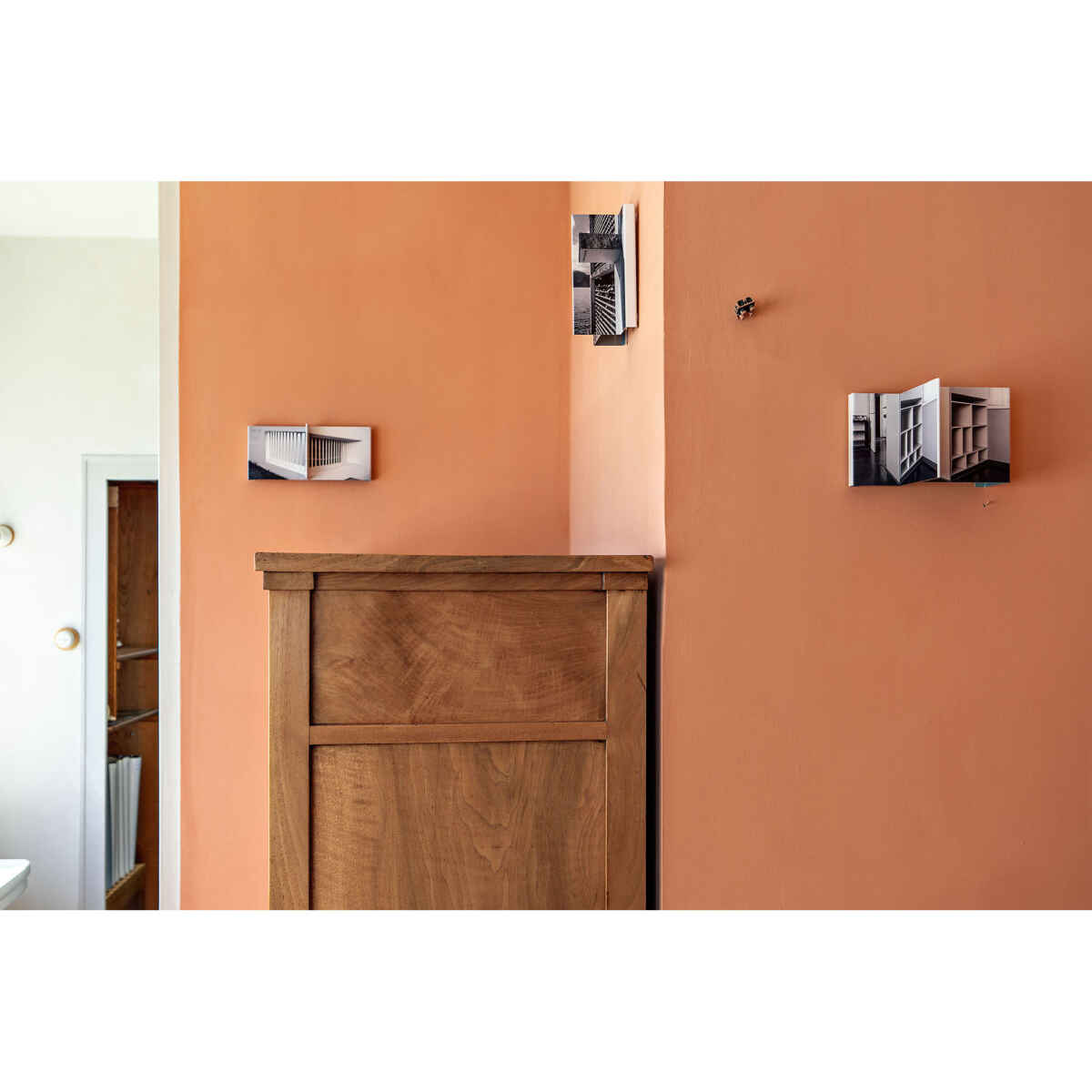 La raison pour laquelle j’ai choisi le noir-blanc, c’est parce qu’il permet de raconter une histoire ou faire état d’une abstraction, tandis que la couleur permet plutôt de montrer une atmosphère. Je travaille souvent en noir-blanc: ça révèle bien la lumière et c’est plus sculptural que la couleur. D’ailleurs, je pense que ce serait contre-producif de travailler en couleur, ici, vu la place prépondérante de la couleur à la Villa. Avec le noir-blanc, je fais une sorte de transformation de l’image – c’est ça que je trouve important. J’ai souvent fait de grandes installations (plusieurs fois à Vevey, d’ailleurs) et je suis connue pour faire des giganto sur des façades d’immeubles et de monuments – c’est pour ça que je trouve intéressant de travailler à une autre échelle. C’est aussi l’occasion de parler autrement de la grandeur: pas besoin de gigantisme pour exprimer le grandiose. Les formats des objets-types sont adaptés à la Villa «Le Lac» qui ne fait que 64 m² ; et ici, on est bel et bien dans quelque chose de grandiose. Il y a un concentré de génie dans cette maison, c’est extraordinaire. Pour moi, c’est un chef-d’œuvre!»