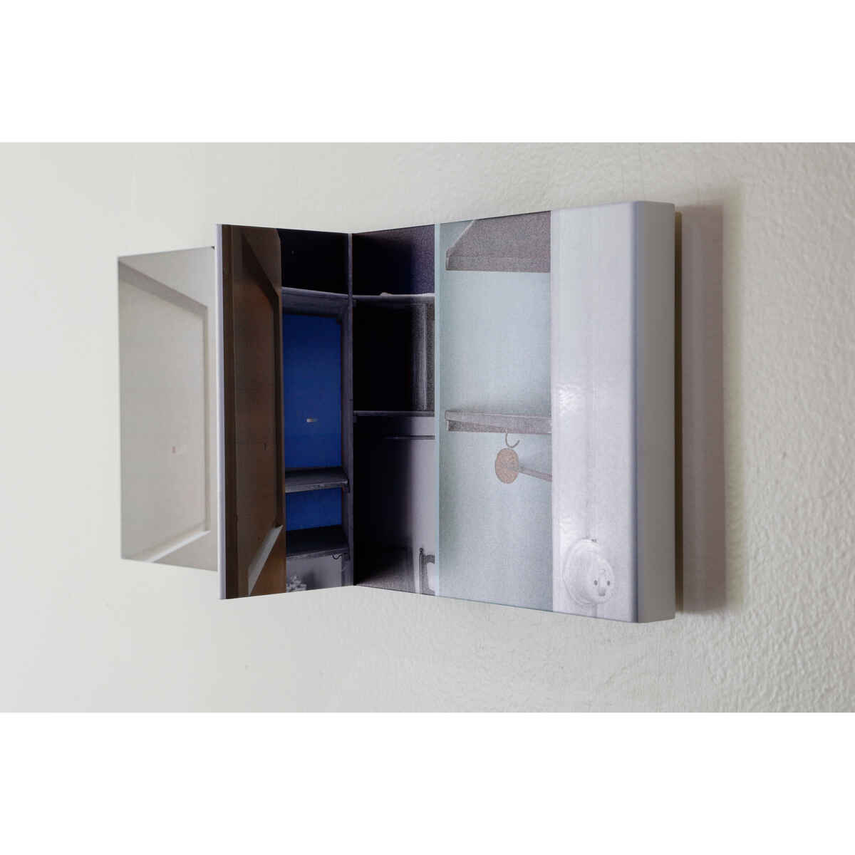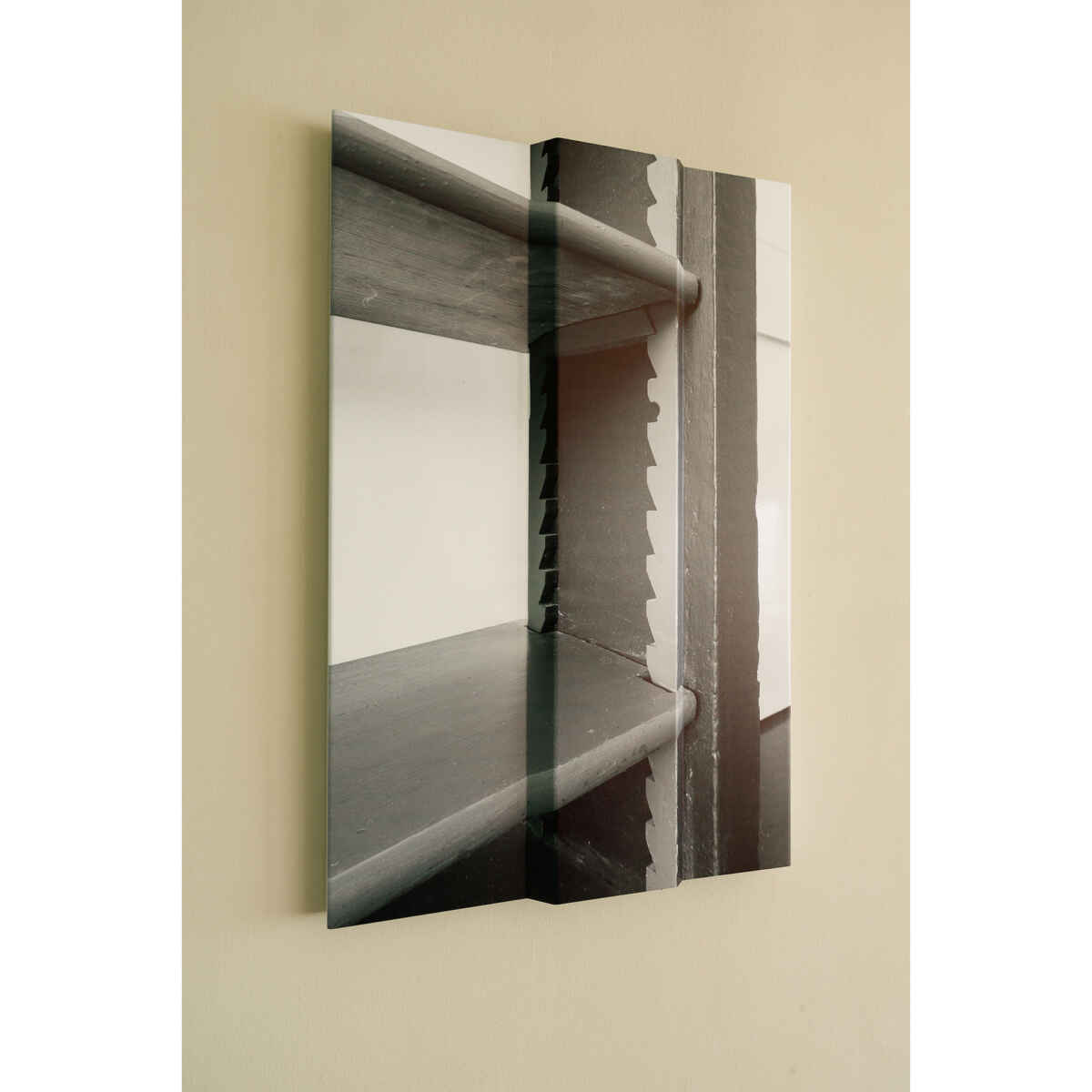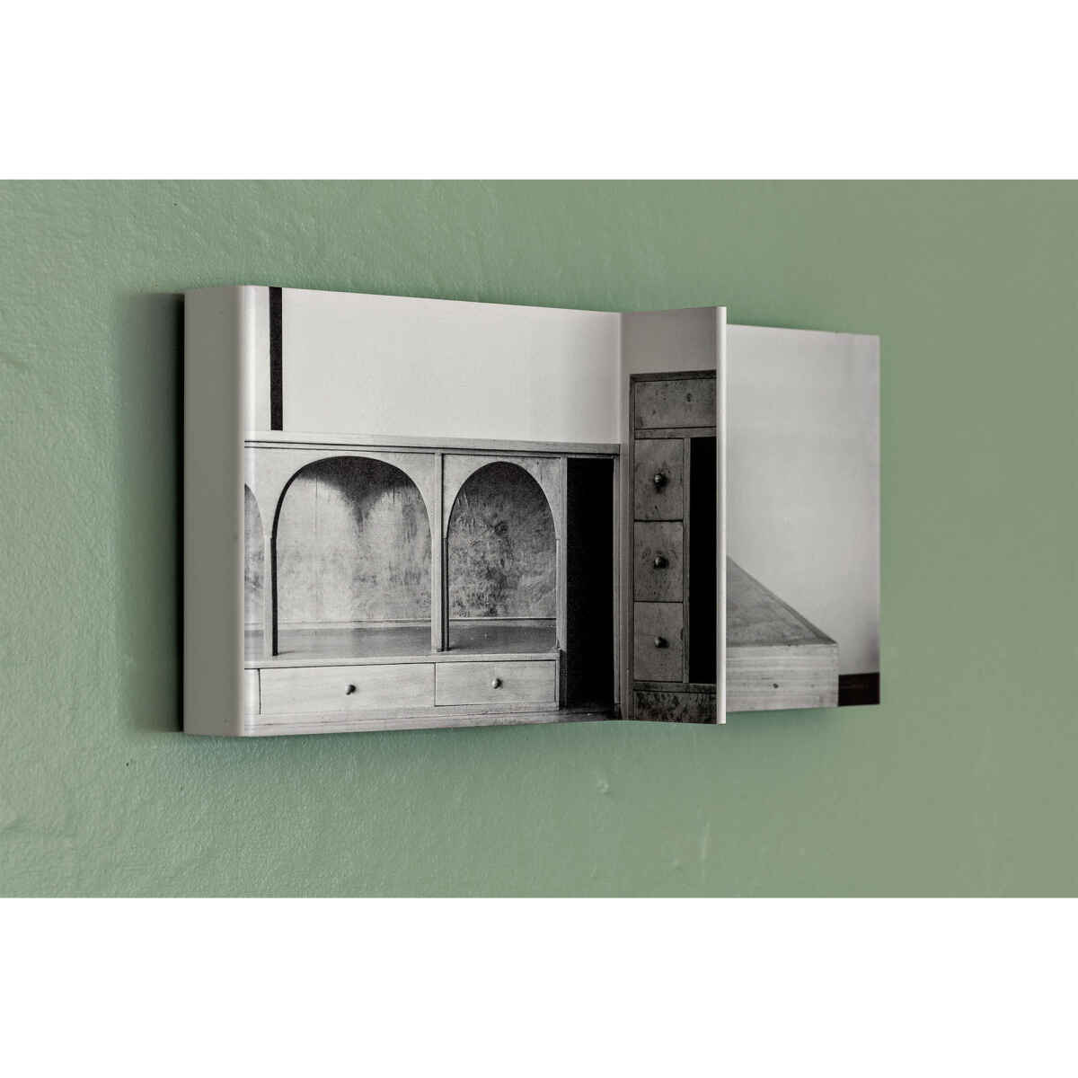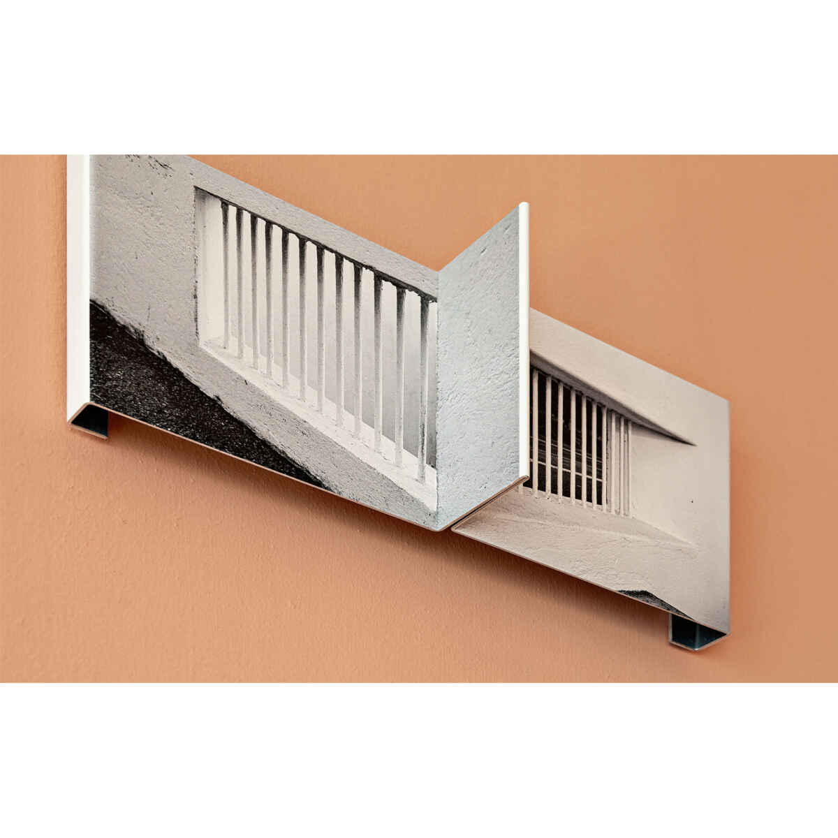 La raison pour laquelle j’ai choisi le noir-blanc, c’est parce qu’il permet de raconter une histoire ou faire état d’une abstraction, tandis que la couleur permet plutôt de montrer une atmosphère. Je travaille souvent en noir-blanc: ça révèle bien la lumière et c’est plus sculptural que la couleur. D’ailleurs, je pense que ce serait contre-producif de travailler en couleur, ici, vu la place prépondérante de la couleur à la Villa. Avec le noir-blanc, je fais une sorte de transformation de l’image – c’est ça que je trouve important. J’ai souvent fait de grandes installations (plusieurs fois à Vevey, d’ailleurs) et je suis connue pour faire des giganto sur des façades d’immeubles et de monuments – c’est pour ça que je trouve intéressant de travailler à une autre échelle. C’est aussi l’occasion de parler autrement de la grandeur: pas besoin de gigantisme pour exprimer le grandiose. Les formats des objets-types sont adaptés à la Villa «Le Lac» qui ne fait que 64 m² ; et ici, on est bel et bien dans quelque chose de grandiose. Il y a un concentré de génie dans cette maison, c’est extraordinaire. Pour moi, c’est un chef-d’œuvre!»