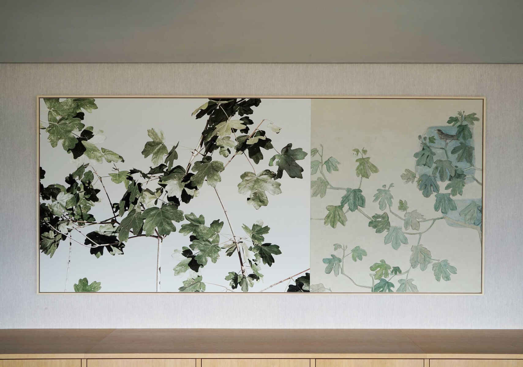 Fotografie und Bildfragment Felix Hoffmann aufgezogen auf Platten, gerahmt in Ahornrahmen