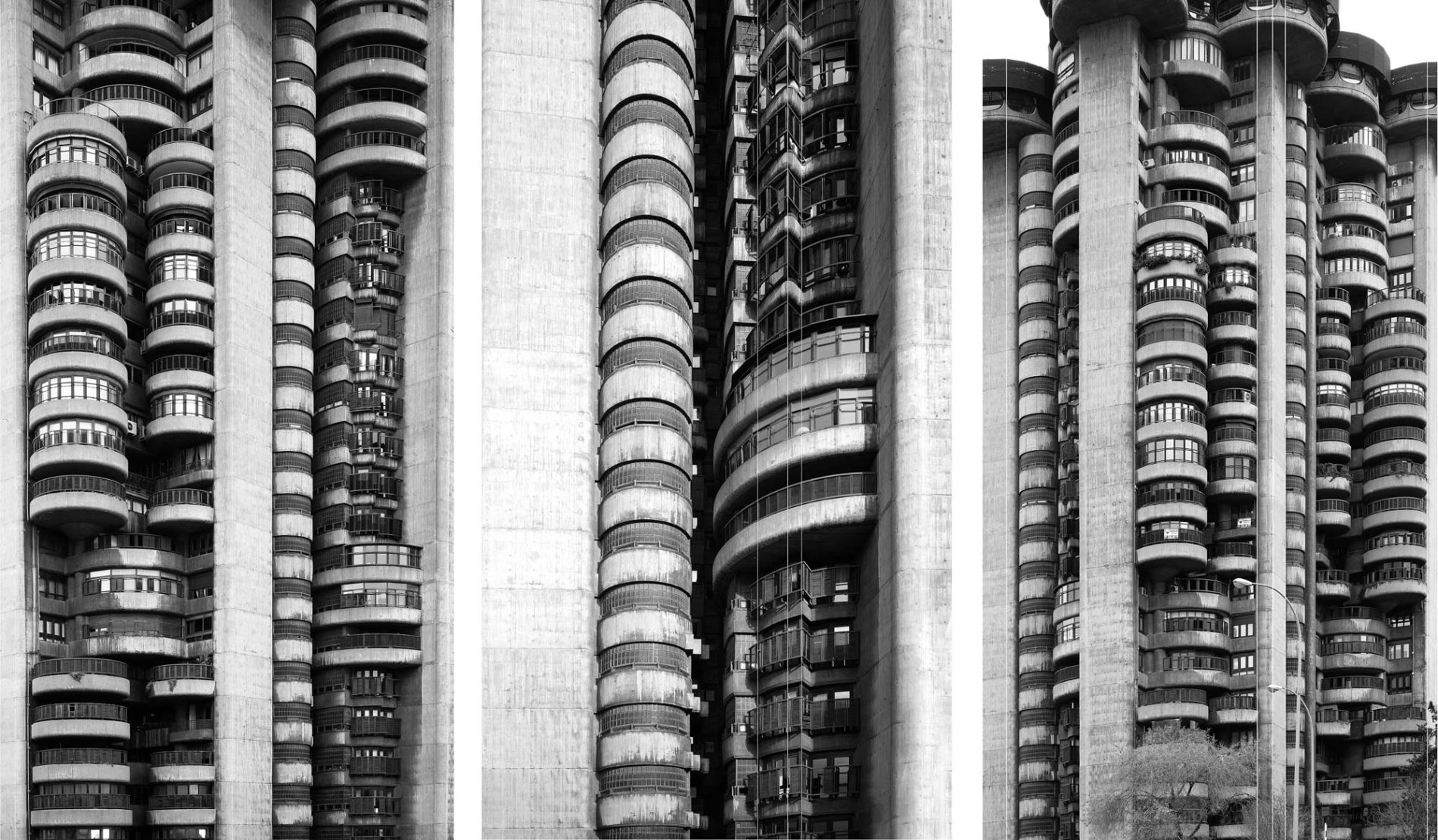 Torres Blancas, 2016 120 / 180 cm ( dreiteilig ) Digitaldruck schwarz-weiss auf Aluminium weiss lackiert, Relief Auflage: 3 + 2 EA