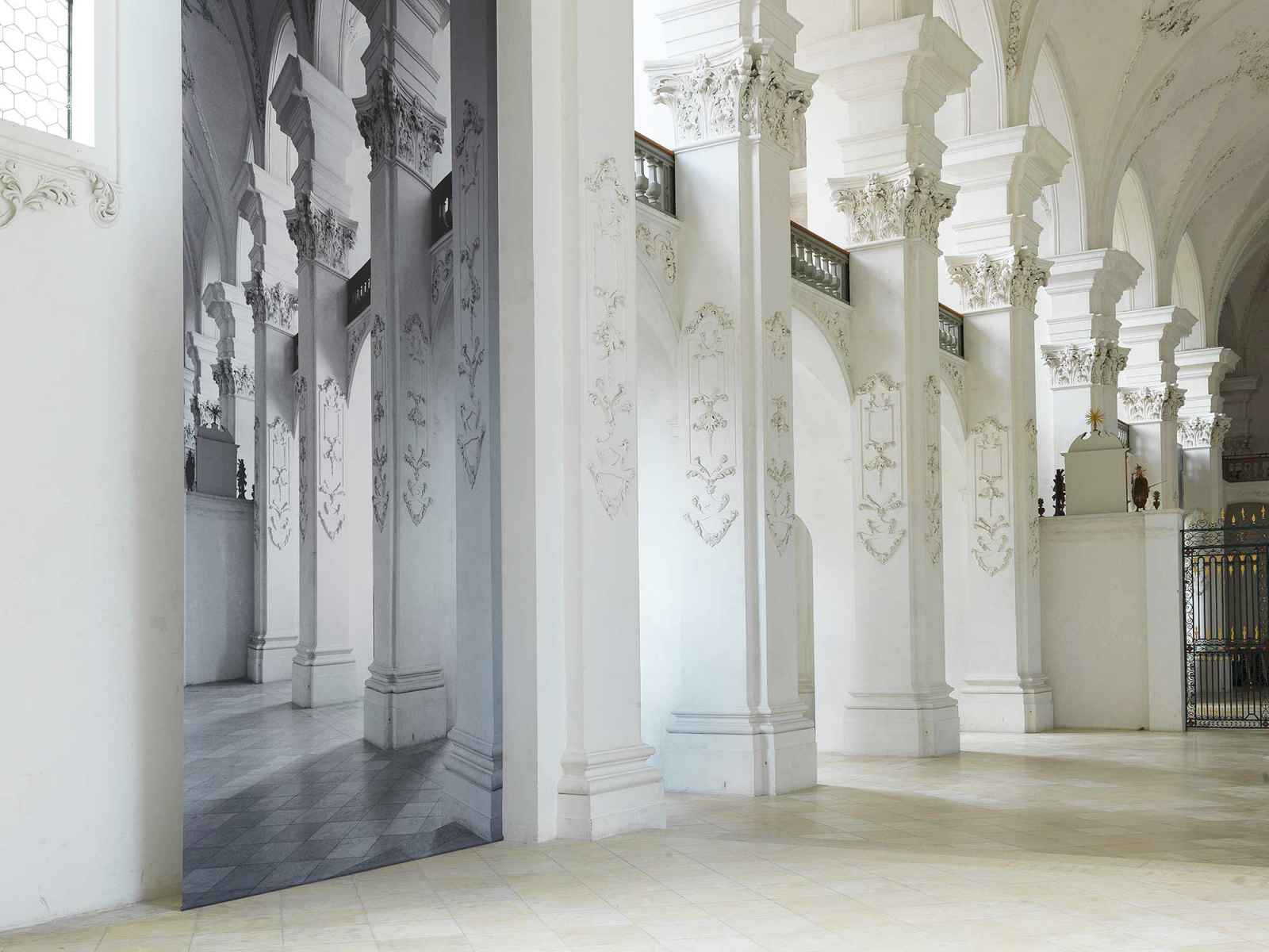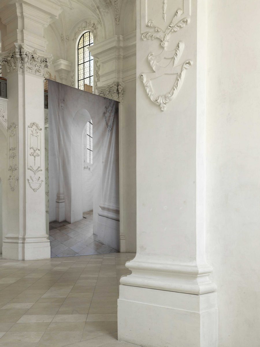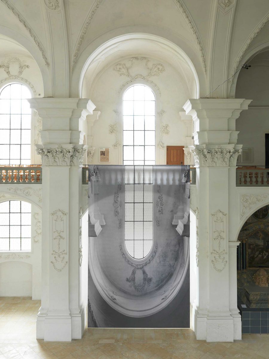 Die Künstlerin Renate Buser setzt sich in ihrer monumentalen fotografischen Installation mit den Charakteristiken der Abteikirche auseinander. Mit Vergrösserung, Verschiebung und Umkehrung schärft sie unseren Blick auf architektonische Fragmente, «die man zwar sehen kann, aber nicht wahrnimmt» (Renate Buser).