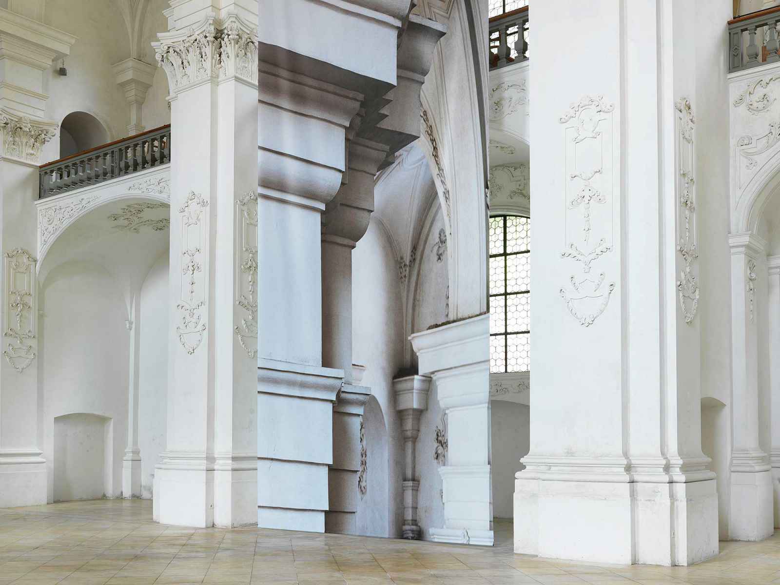 Un dialogue entre l’architecture baroque et la photographie contemporaine. L’installation photographique monumentale de Renate Buser relève les caractéristiques principales de l’abbatiale de Bellelay. À travers les inversions, les déplacements et les agrandissements, elle aiguise notre regard sur les éléments architecturaux «qu’on peut voir, mais qu’on ne perçoit pas».