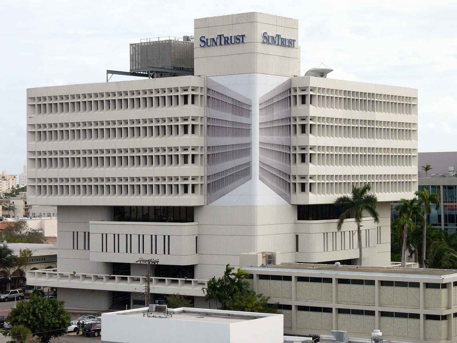 The building has two identical sides, one reflecting the other. This symmetry will be visualized by putting two monumental photographs of the façade of the building on each side of the north west tower. The idea is to open up the solidity of the building, to split it in half, with two photographic images and make it transparent. This will create tension between the photographed spaces and the real space around it, between illusion and reality, and between the inside and the outside. When driving by in a car on Alton Road, the relation between photographed and real perspectives will constantly change. Therefore the installation will be seen best in movement.